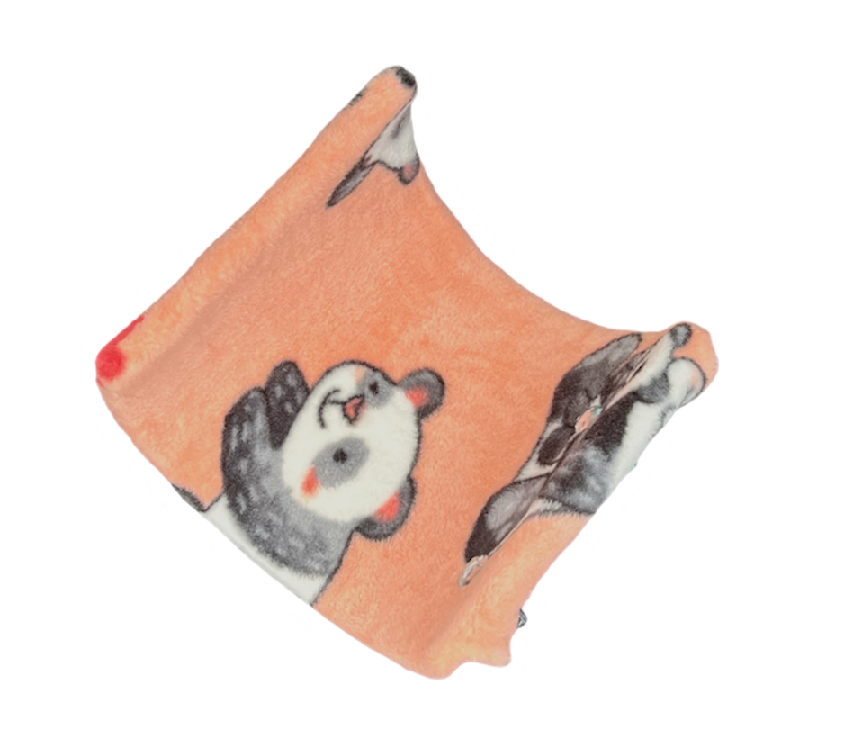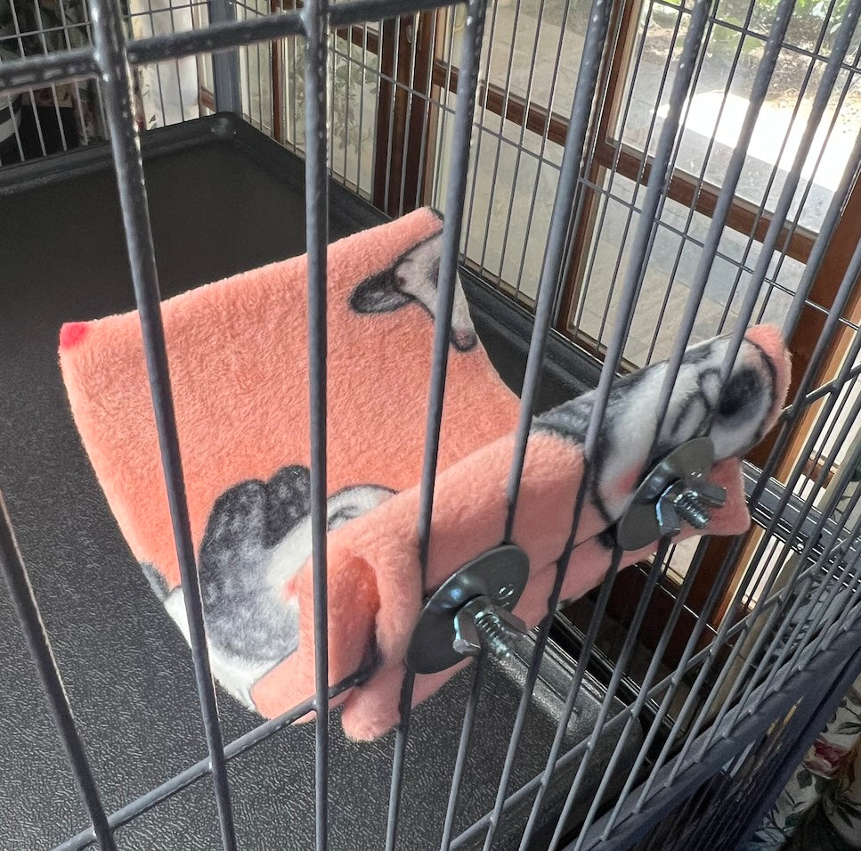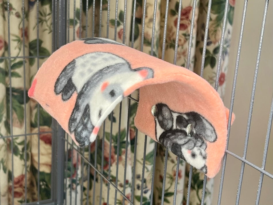 Give you chinchilla, guinea pig, rat, ferret or rabbit a cozy spot to relax with our Fleece Cuddle Ledge. Made from a half 6" PVC tube covered in fleece, it can be mounted as a cuddle cup or ledge. Includes cover and mounting hardware. Available in various fleece patterns.